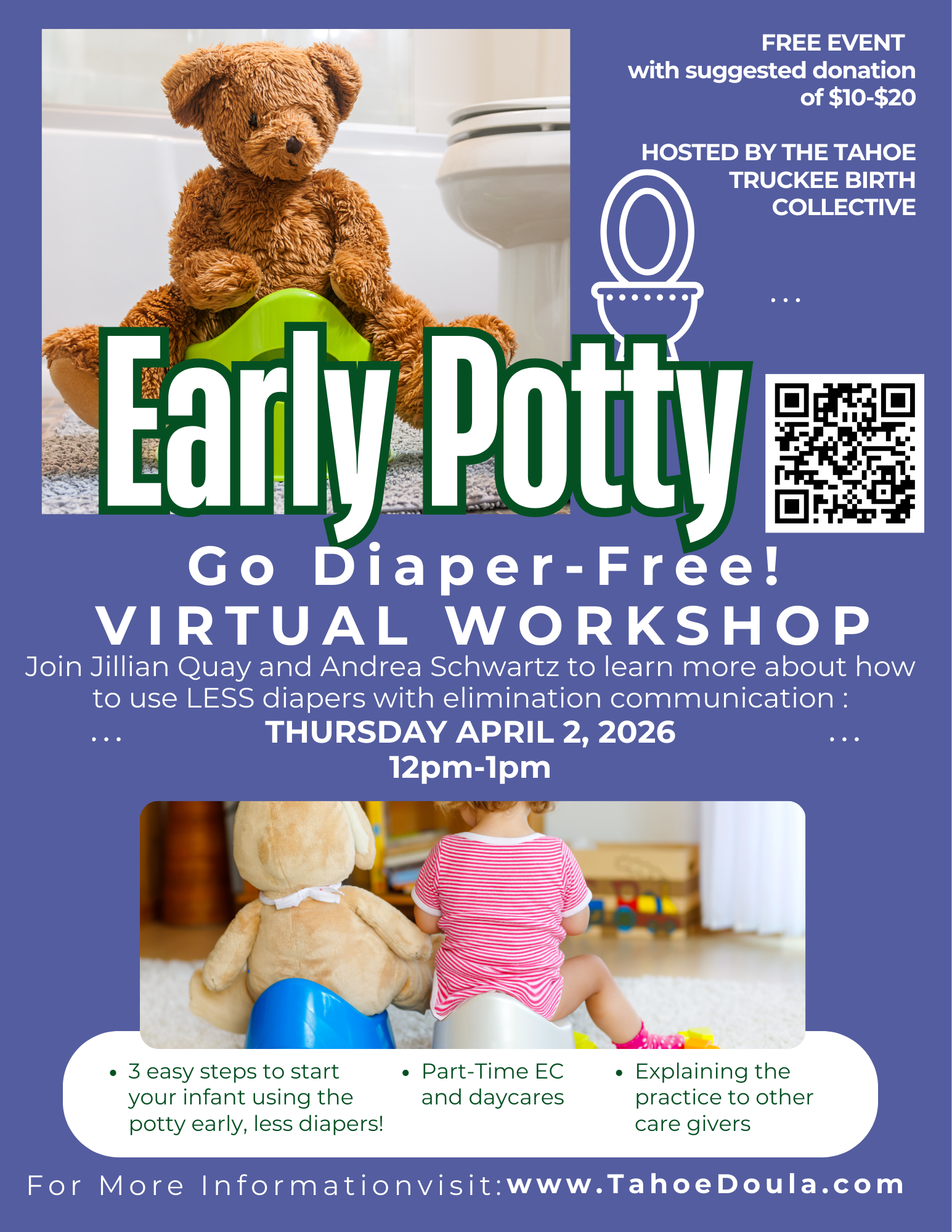 it’s true! I personally saved approx. $3000 by teaching my babies early how and where to GO. By tuning in, we can effectively teach our babes to respect and love their bodies, how they work, and even WHERE to go!